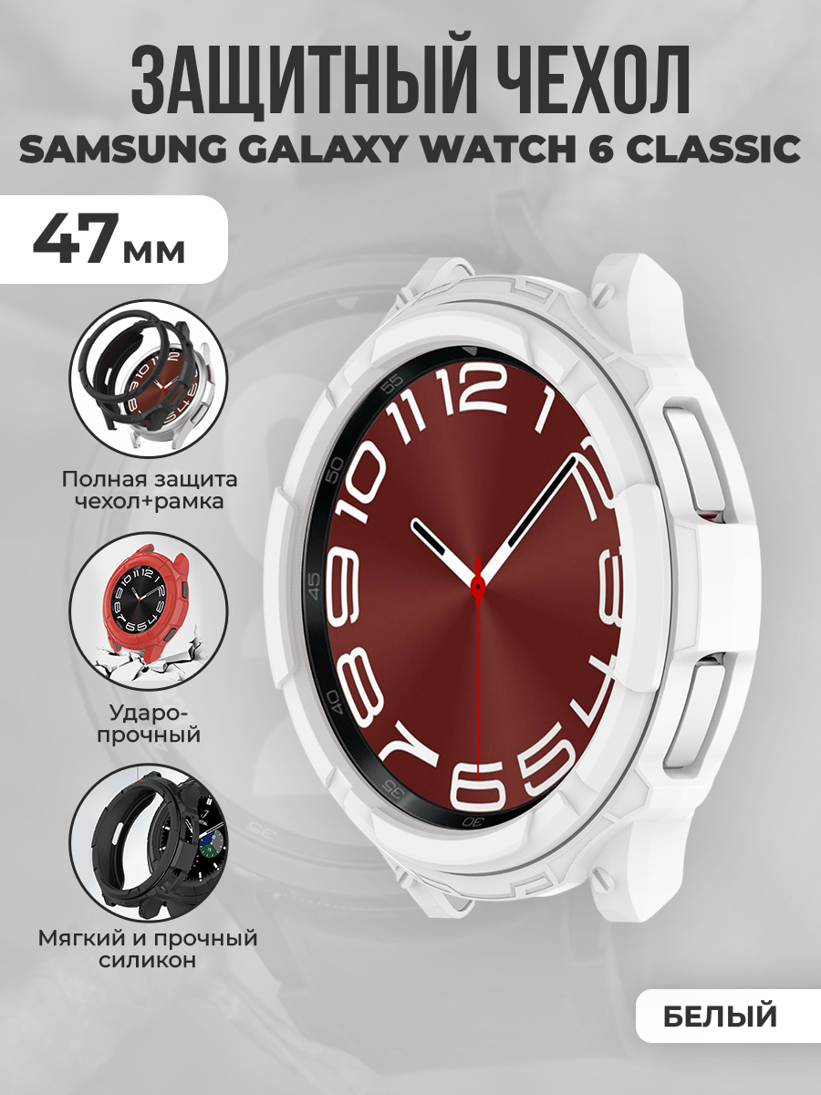 Мягкий защитный чехол 3D для Samsung Galaxy Watch 6 Classic, 47 мм, белый