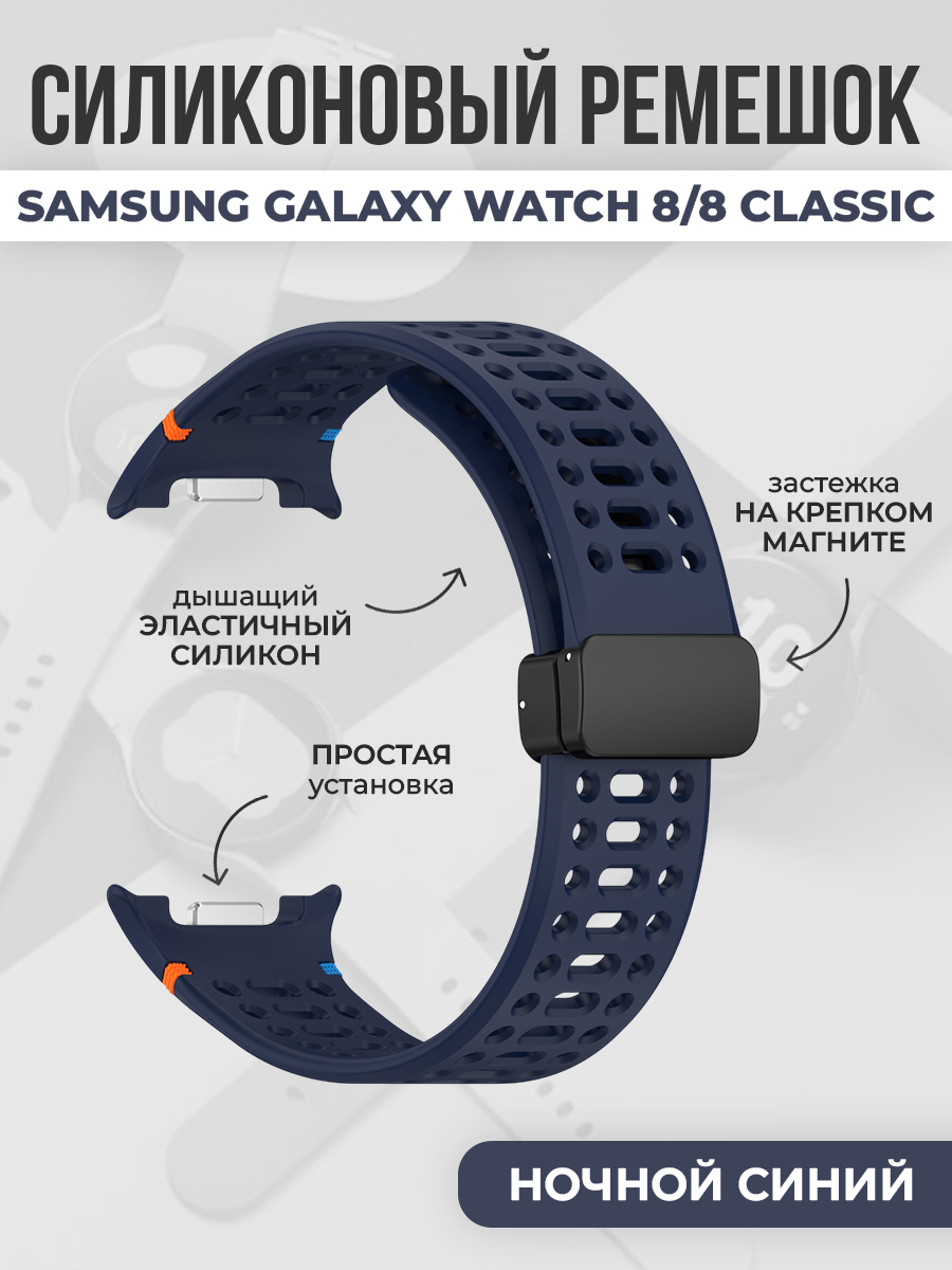 Дышащий силиконовый ремешок с магнитной застежкой для Samsung Galaxy Watch 8/8 Classic, ночной синий