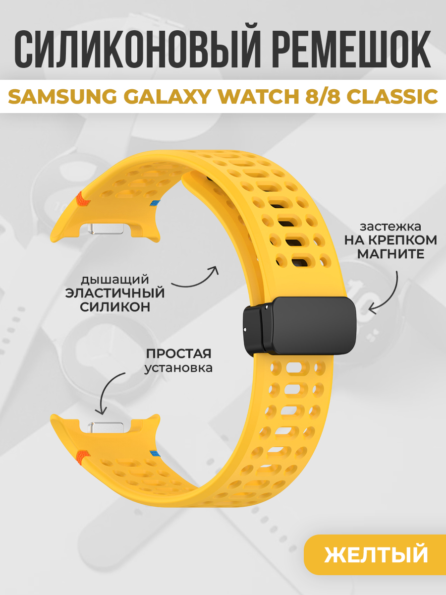 Дышащий силиконовый ремешок с магнитной застежкой для Samsung Galaxy Watch 8/8 Classic, желтый