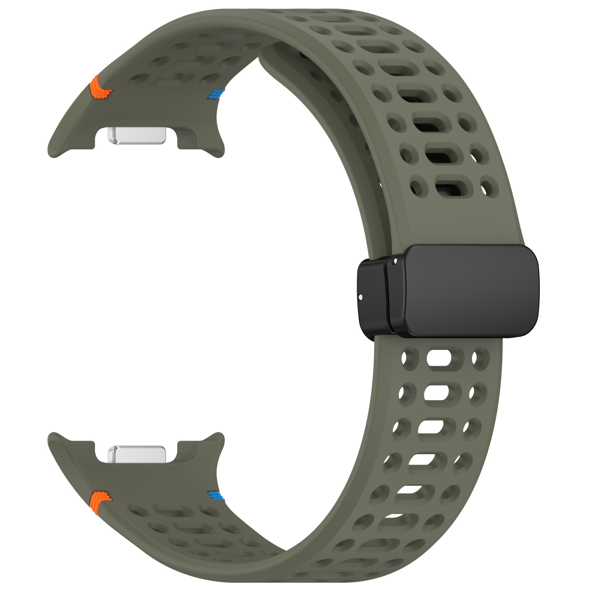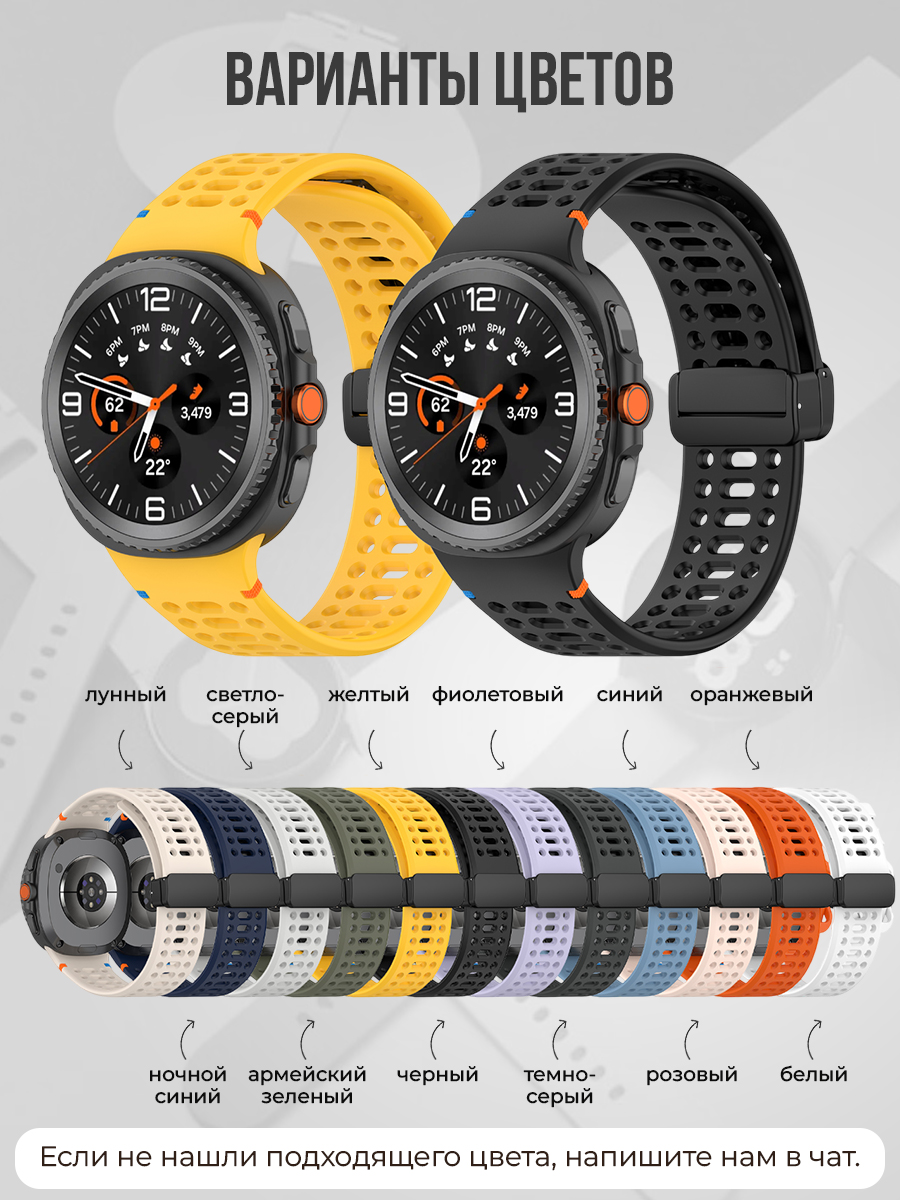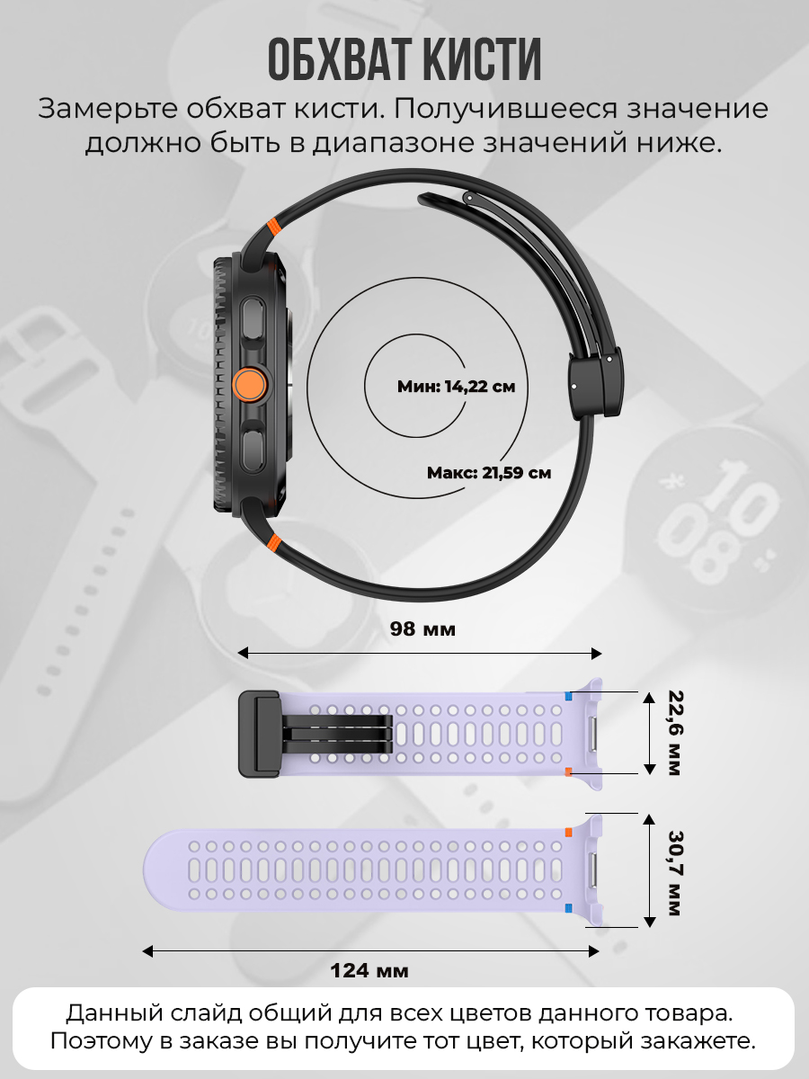 Дышащий силиконовый ремешок с магнитной застежкой для Samsung Galaxy Watch 8/8 Classic — это идеальное сочетание практичности, комфорта и современного дизайна, призванное улучшить повседневное ношение часов и поднять функциональность на новый уровень. Этот ремешок создан для активных людей, которым важна легкость ухода за устройством и удобство в использовании в самых разных условиях: на работе, в спортзале, на прогулке и во время путешествий. Он подходит для моделей Самсунг гелекси вотч 8 и гелекси вотч 8 классик, обеспечивая надежную посадку и долговечность, которая выдержит интенсивную повседневную эксплуатацию. Материал ремешка — дышащий силикон высокого качества, который отличается упругостью, мягкостью к коже и отличной гигиеничностью. В условиях жаркой погоды или длительного ношения кожа не прилипает к ремешку, воздух свободно циркулирует, что снижает риск раздражения и дискомфорта. Такой материал особенно популярен у пользователей, ведущих активный образ жизни: бег, фитнес, походы, командировки и ежедневные задачи в офисе. Силиконовая основа легко чистится, не впитывает запахи и сохраняет внешний вид на протяжении длительного времени. В сочетании с магнитной застежкой ремешок обеспечивает быструю и удобную фиксацию на запястье без необходимости частого снятия.