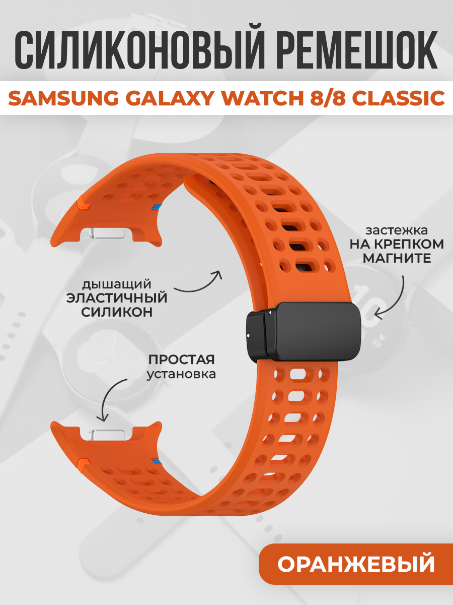 Дышащий силиконовый ремешок с магнитной застежкой для Samsung Galaxy Watch 8/8 Classic, оранжевый