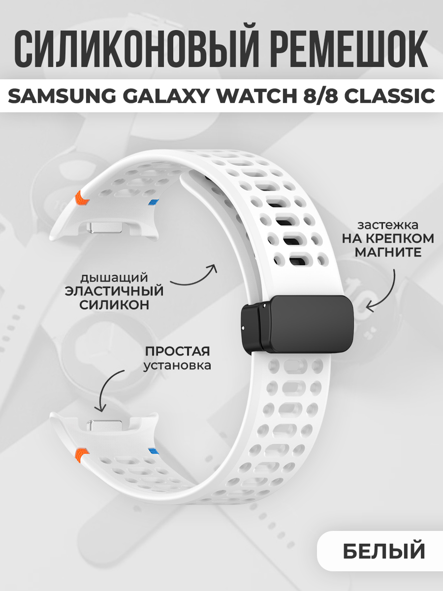 Дышащий силиконовый ремешок с магнитной застежкой для Samsung Galaxy Watch 8/8 Classic, белый