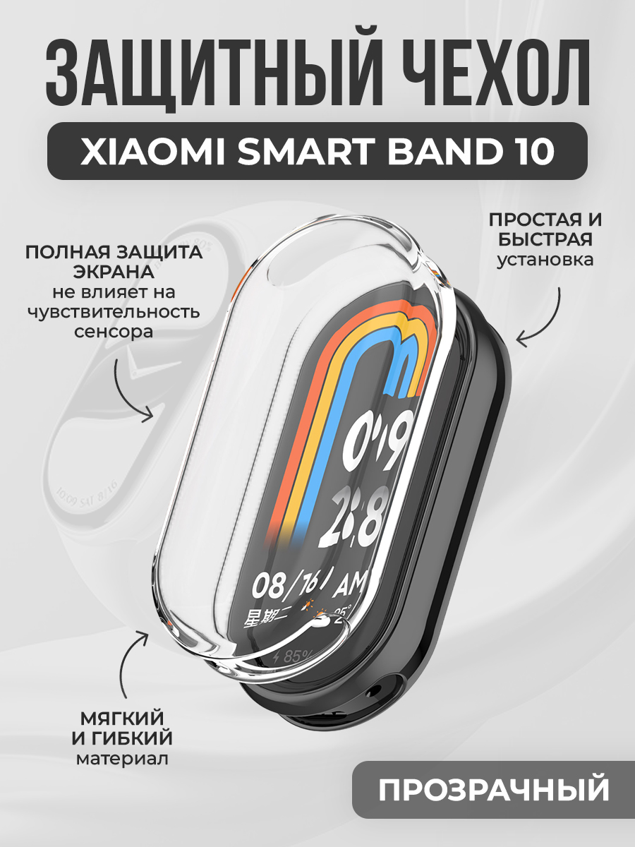 Мягкий защитный ТПУ чехол для Xiaomi Smart Band 10, прозрачный