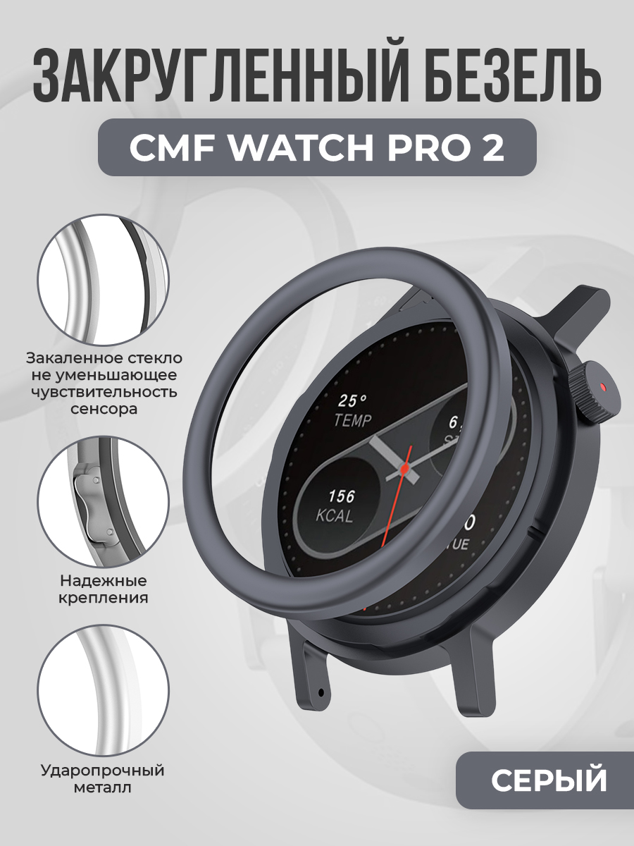 Металлический закругленный безель с защитным стеклом для CMF Watch Pro 2, серый