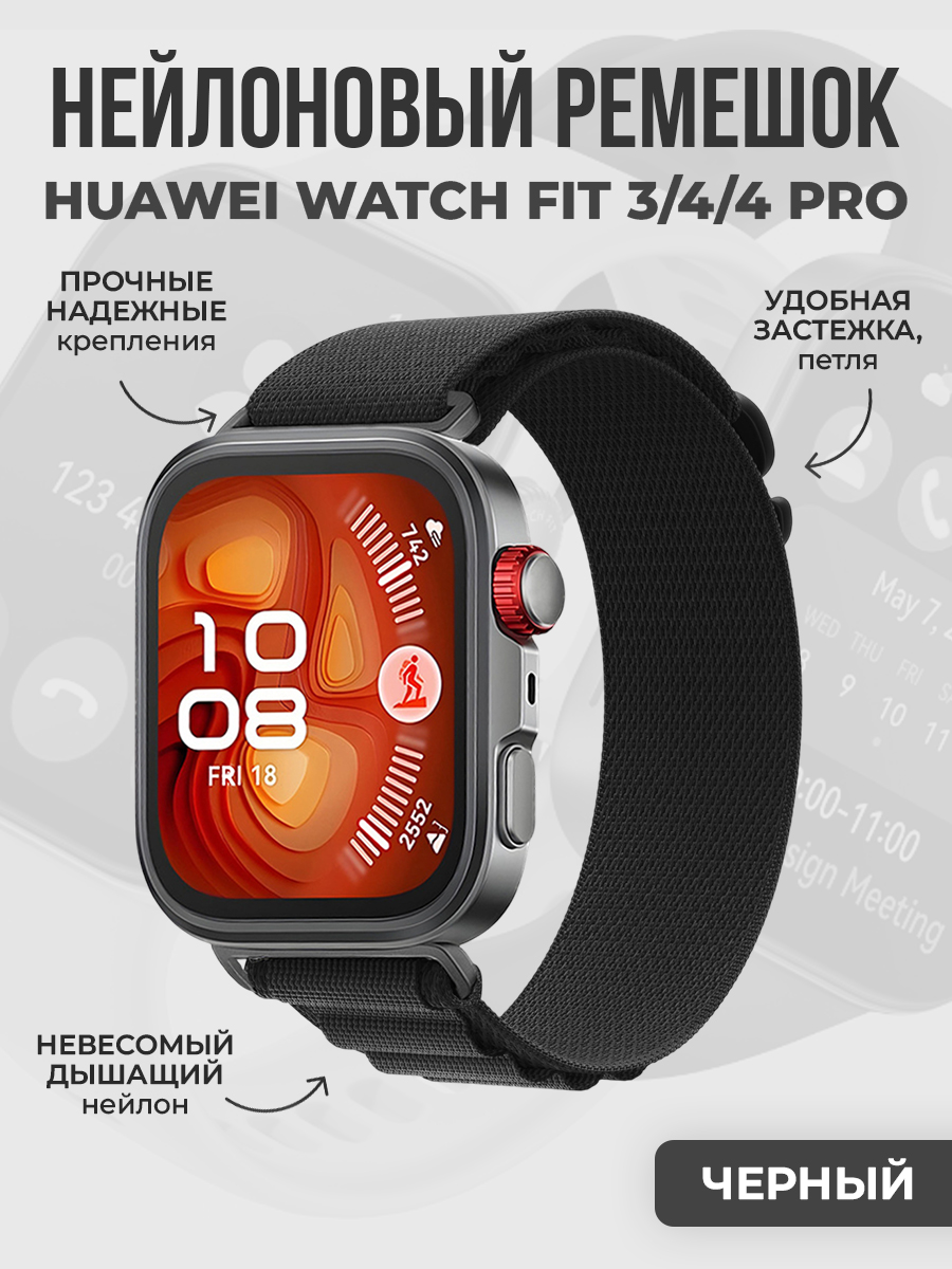 Дышащий нейлоновый ремешок для Huawei Watch Fit 3/4/4 Pro, черный