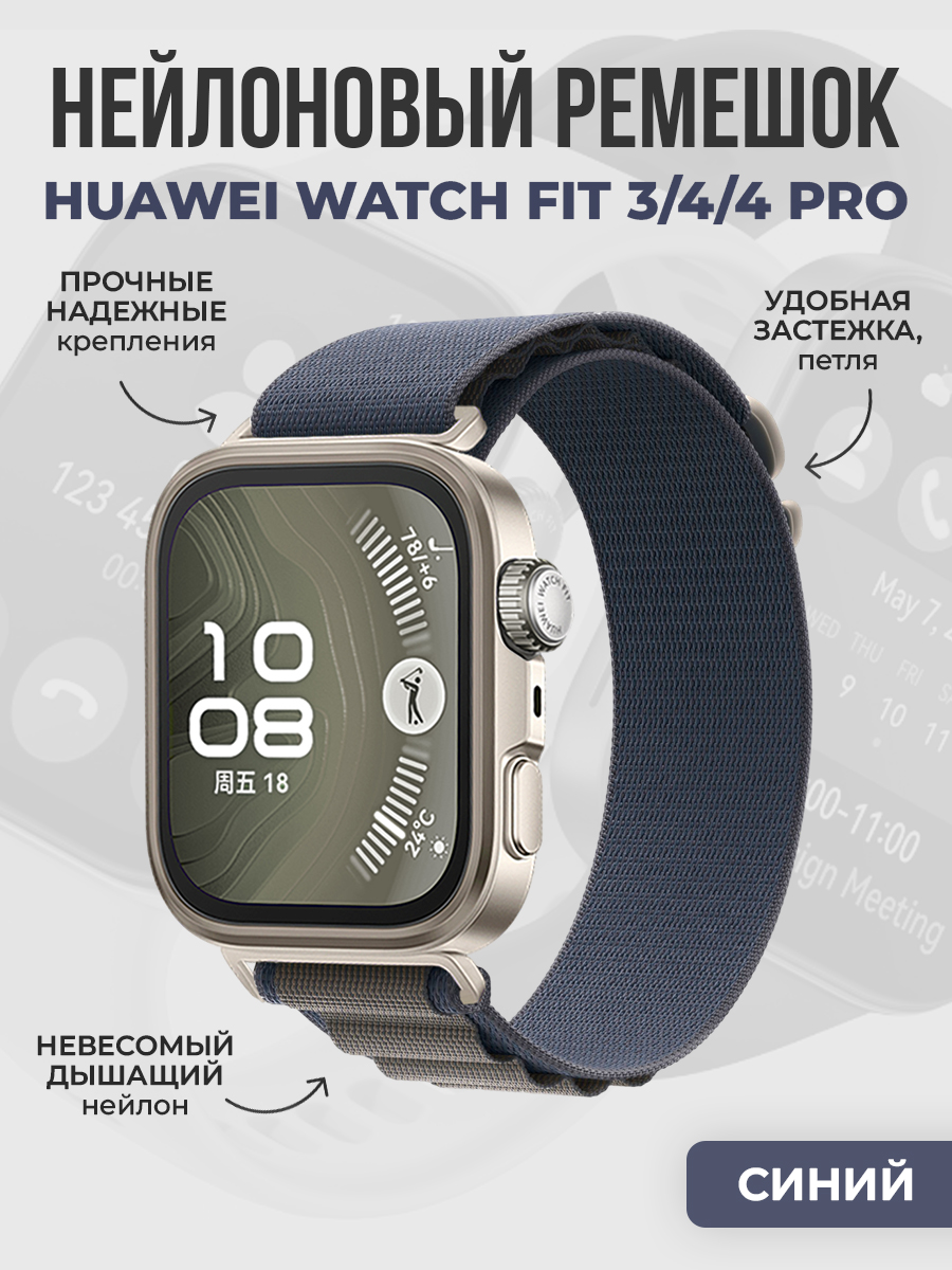 Дышащий нейлоновый ремешок для Huawei Watch Fit 3/4/4 Pro, синий