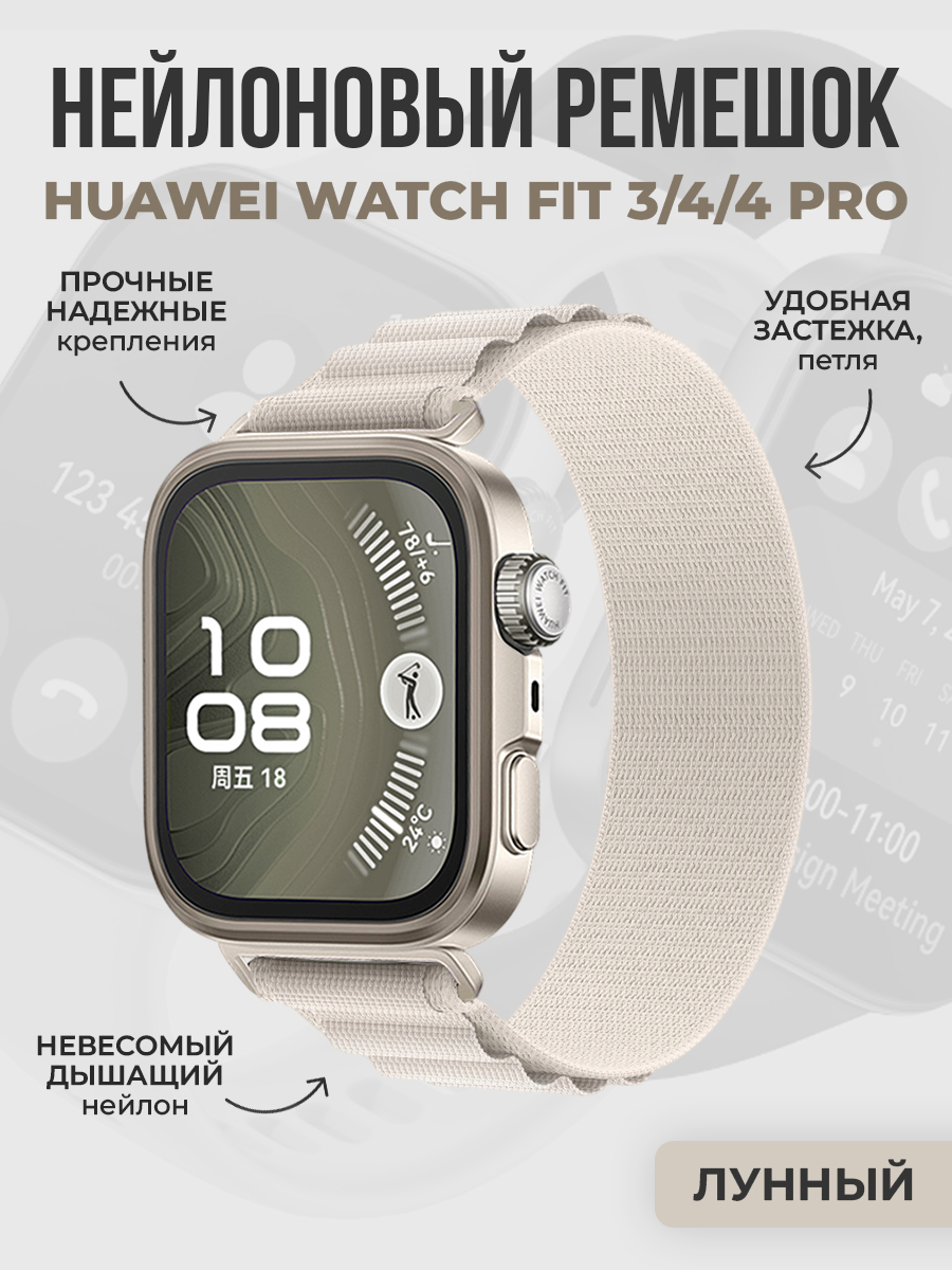 Дышащий нейлоновый ремешок для Huawei Watch Fit 3/4/4 Pro, лунный