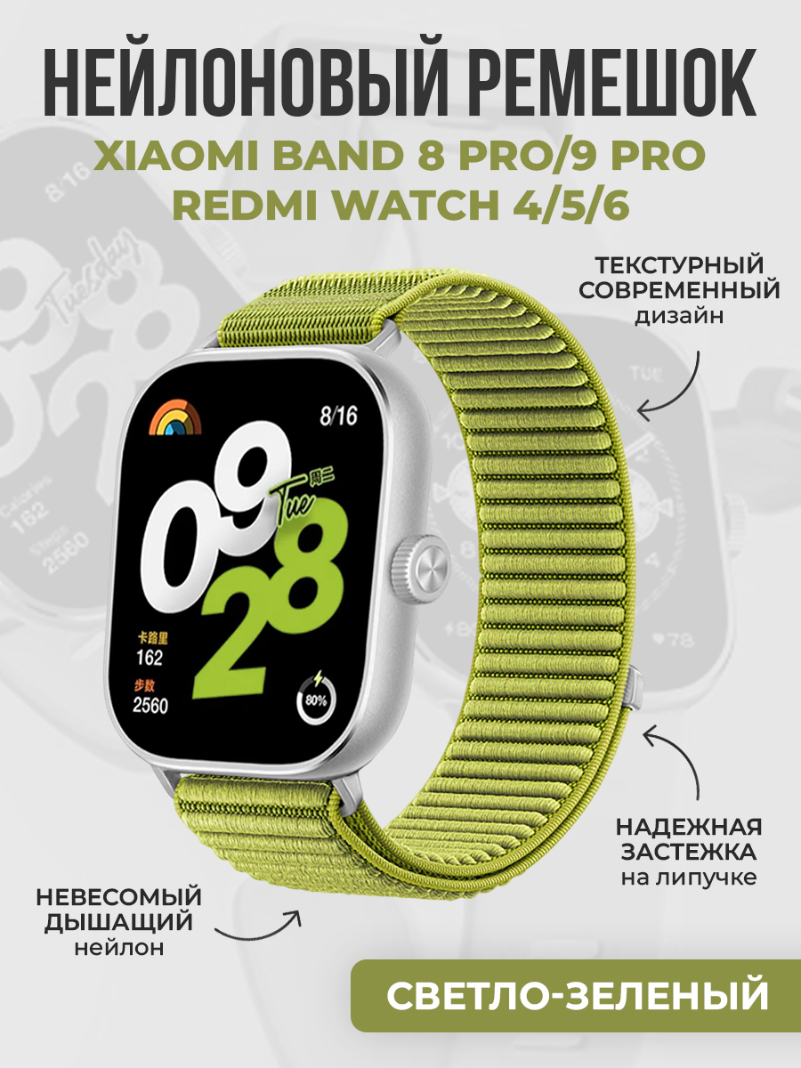 Текстурный нейлоновый ремешок для Xiaomi Band 8 Pro/9 Pro/Redmi Watch 4/5/6, светло-зеленый
