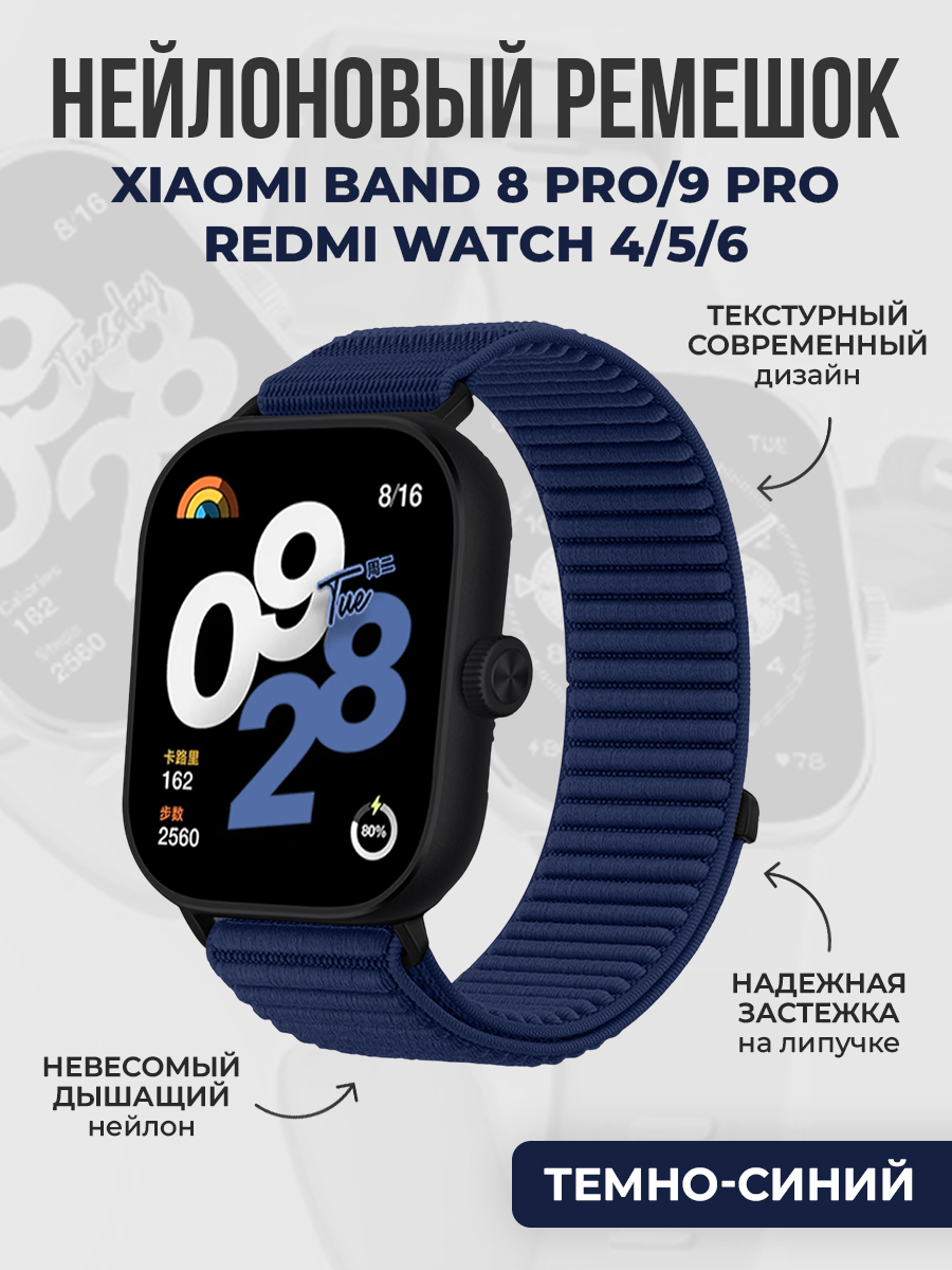 Текстурный нейлоновый ремешок для Xiaomi Band 8 Pro/9 Pro/Redmi Watch 4/5/6, темно-синий