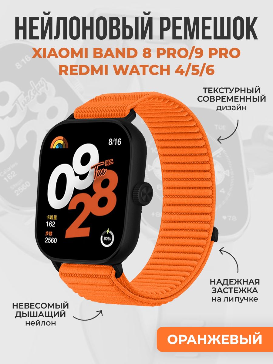 Текстурный нейлоновый ремешок для Xiaomi Band 8 Pro/9 Pro/Redmi Watch 4/5/6, оранжевый