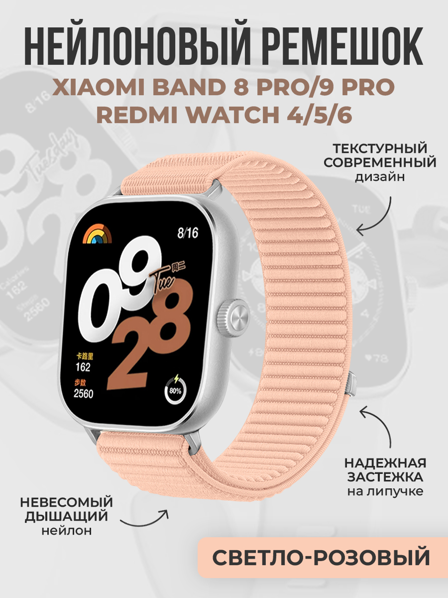 Текстурный нейлоновый ремешок для Xiaomi Band 8 Pro/9 Pro/Redmi Watch 4/5/6, светло-розовый