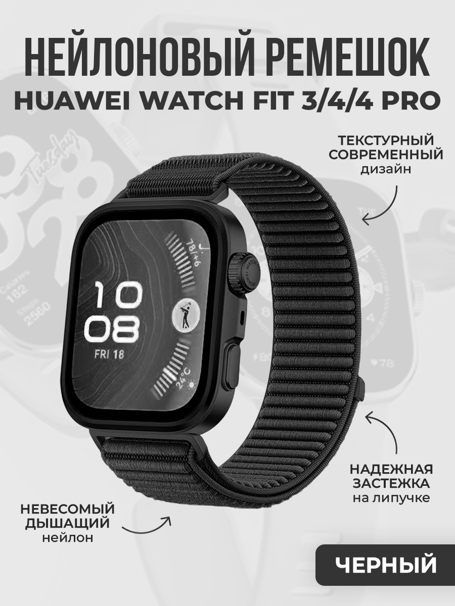 Текстурный нейлоновый ремешок для Huawei Watch Fit 3/4/4 Pro, черный