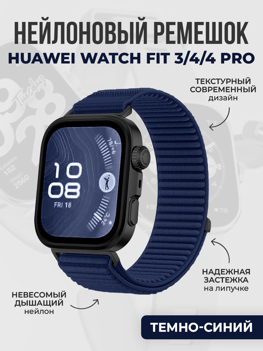 Текстурный нейлоновый ремешок для Huawei Watch Fit 3/4/4 Pro, темно-синий