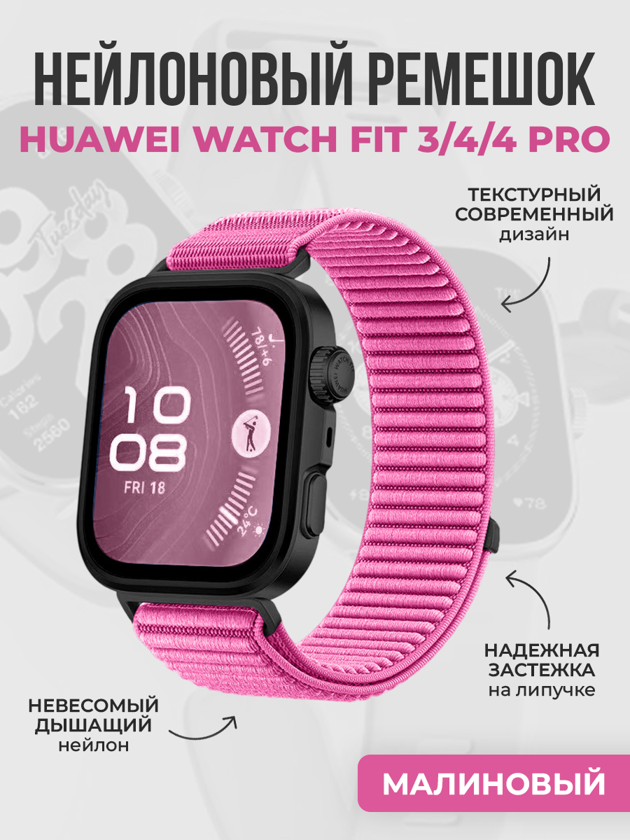 Текстурный нейлоновый ремешок для Huawei Watch Fit 3/4/4 Pro, малиновый