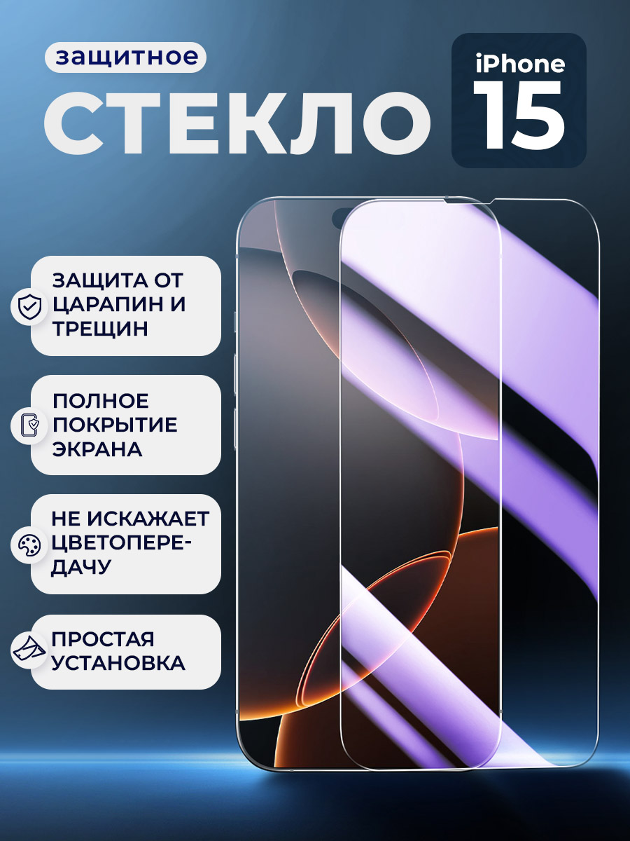 Защитное стекло для iPhone 15, прозрачное