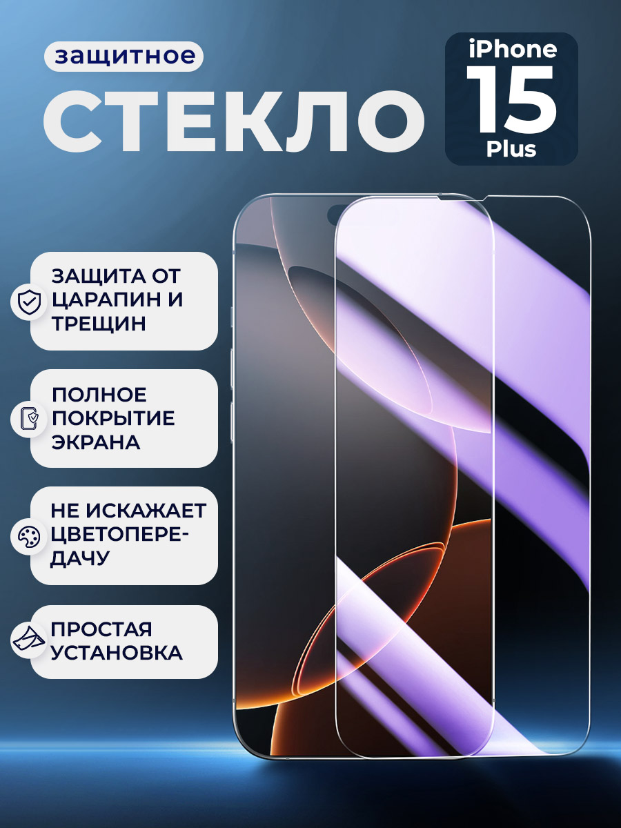Защитное стекло для iPhone 15 Plus, прозрачное