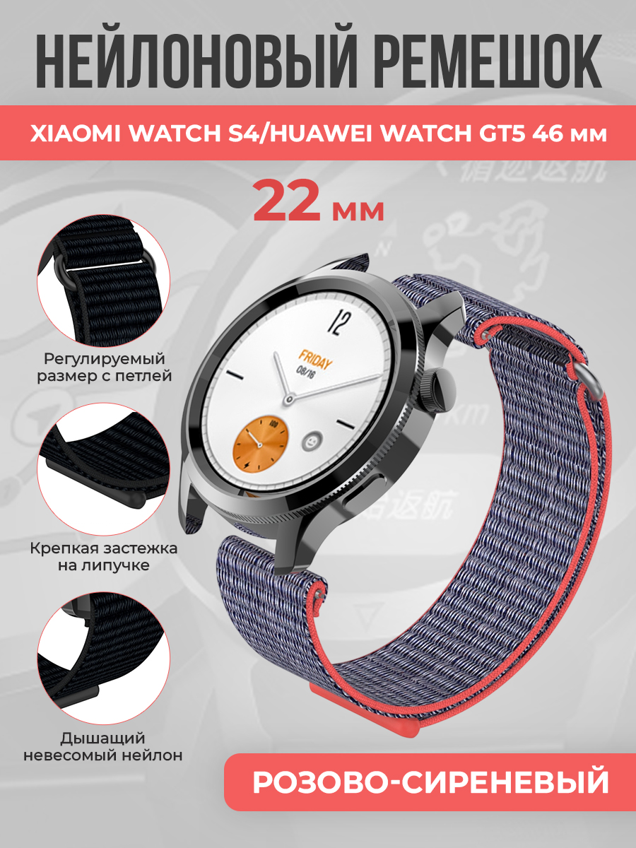 Универсальный нейлоновый ремешок 22 мм для Xiaomi Watch S4/Huawei Watch GT5, розово-сиреневый