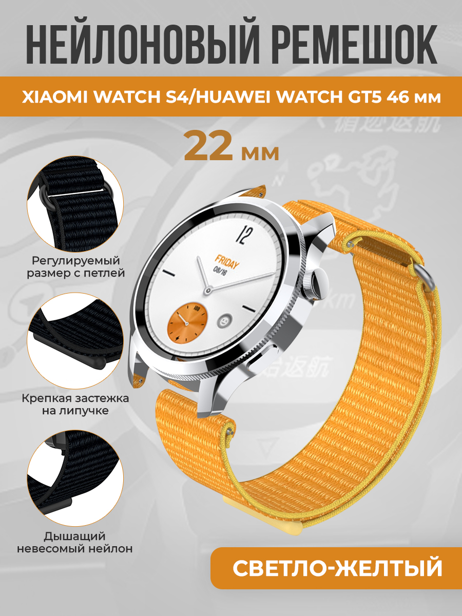 Универсальный нейлоновый ремешок 22 мм для Xiaomi Watch S4/Huawei Watch GT5, светло-желтый