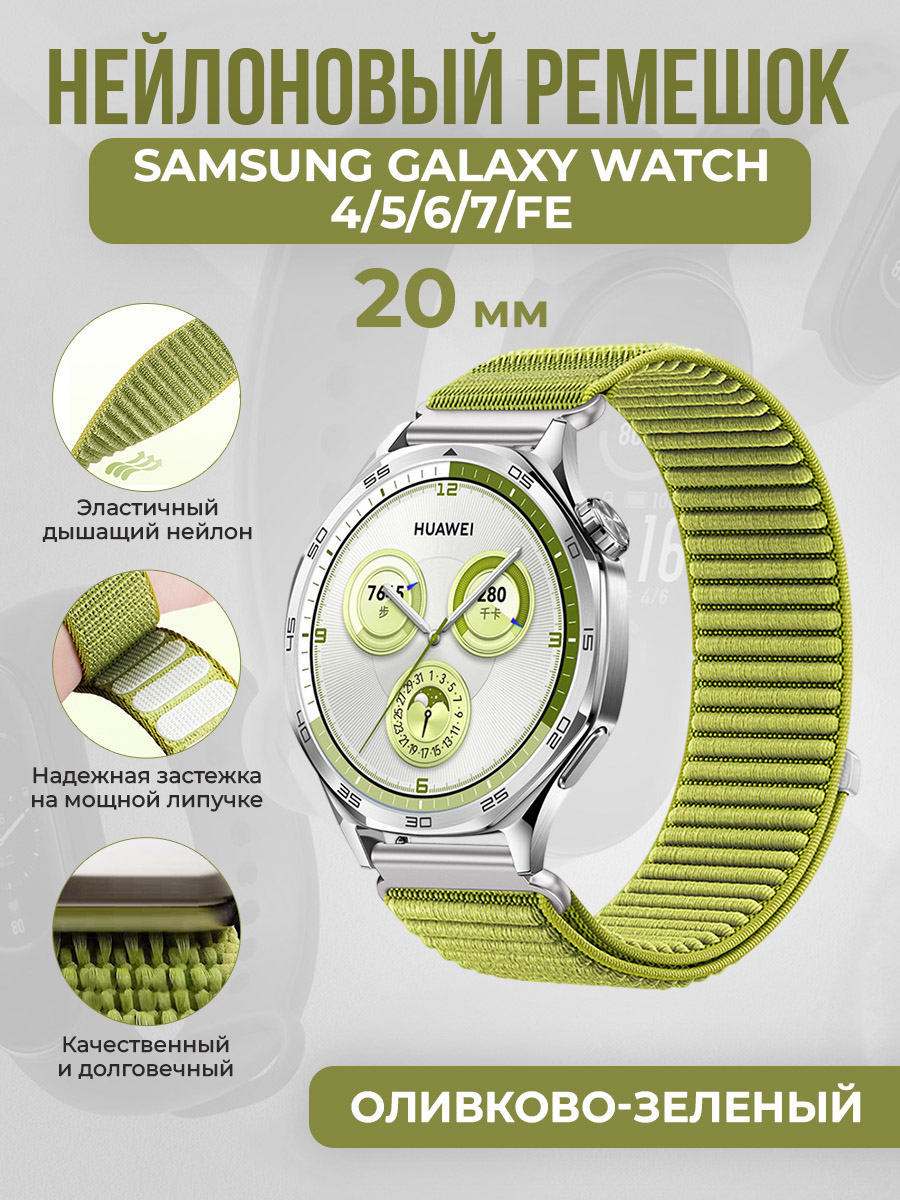 Универсальный нейлоновый ремешок для Samsung Galaxy Watch 4/5/6/7/FE, 20 мм, оливково-зеленый