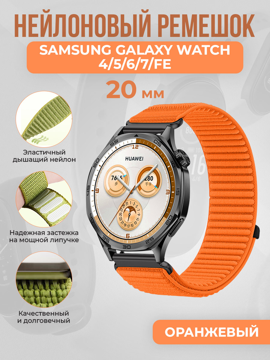 Универсальный нейлоновый ремешок для Samsung Galaxy Watch 4/5/6/7/FE, 20 мм, оранжевый