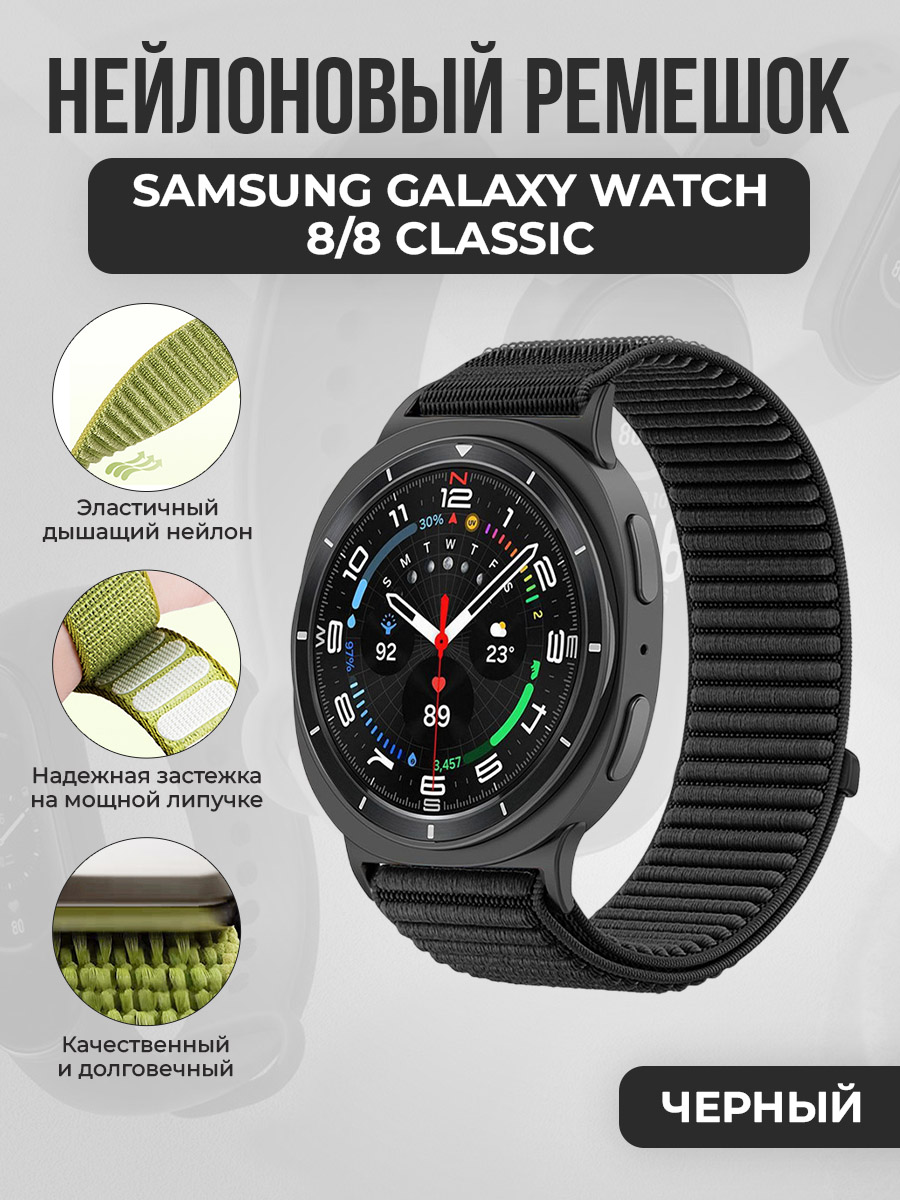 Нейлоновый ремешок для Samsung Galaxy Watch 8/8 Classic, черный