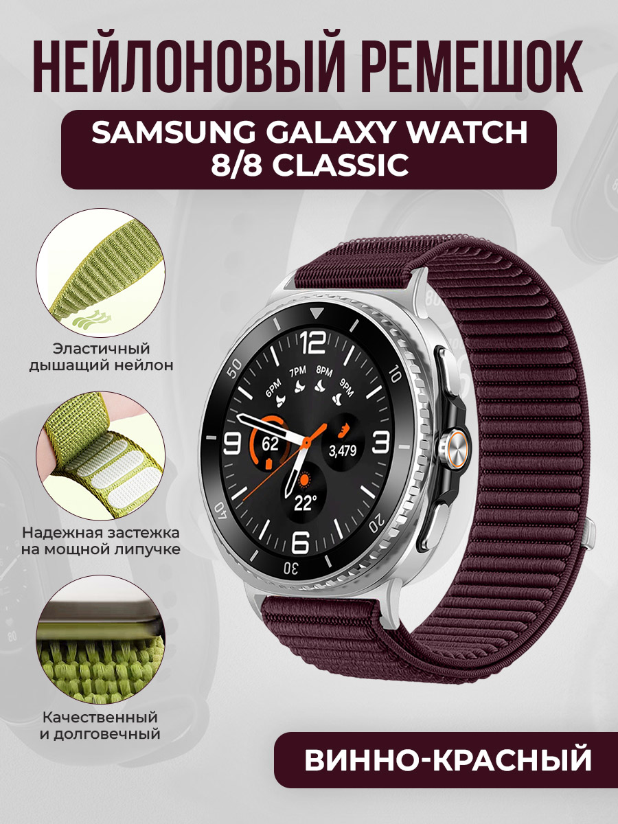 Нейлоновый ремешок для Samsung Galaxy Watch 8/8 Classic, винно-красный