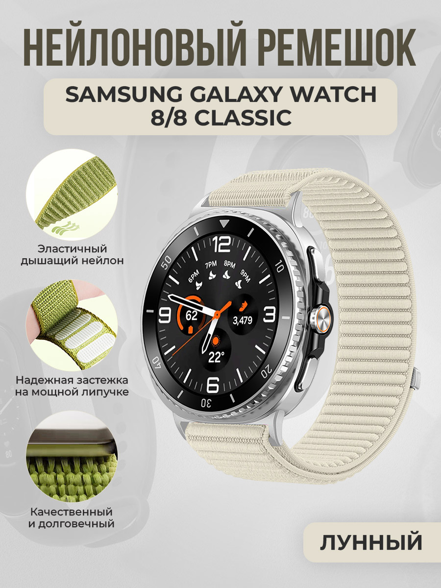 Нейлоновый ремешок для Samsung Galaxy Watch 8/8 Classic, лунный