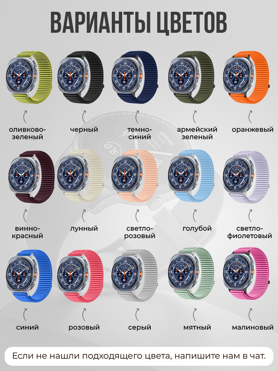 Нейлоновый ремешок для Самунг гелекси воч 8/8 классик — сочетание функциональности и стиля, созданное для активного использования и комфорта повседневной носки. Выбор цвета и легкость замены позволяют персонализировать ваши часы под любой образ.