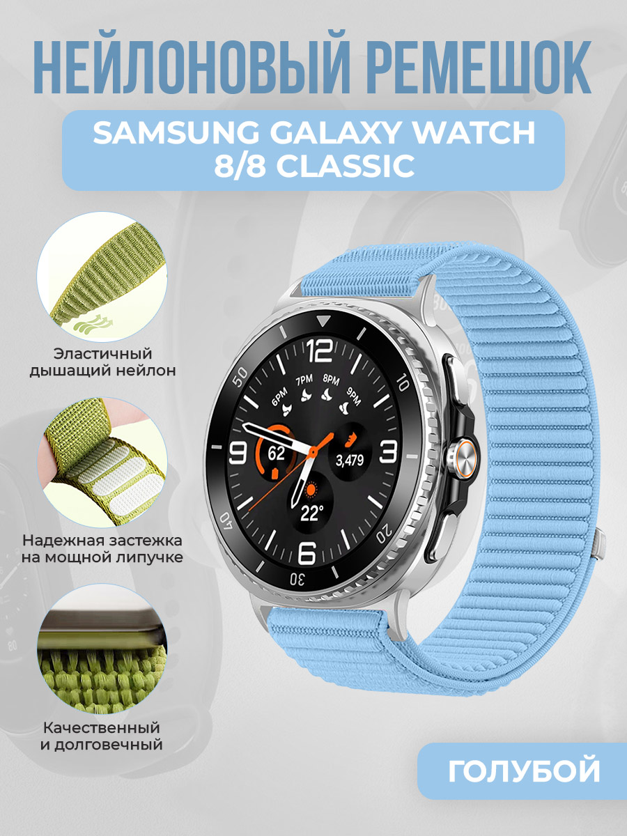 Нейлоновый ремешок для Samsung Galaxy Watch 8/8 Classic, голубой