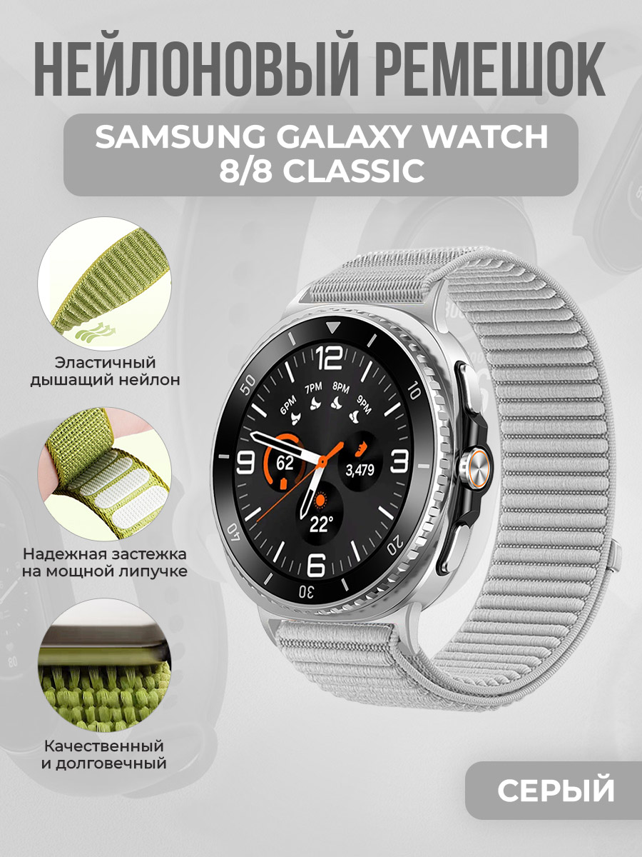 Нейлоновый ремешок для Samsung Galaxy Watch 8/8 Classic, серый