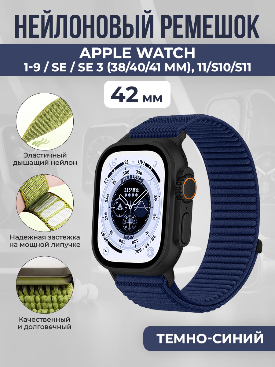 Нейлоновый ремешок для Apple Watch 1-9 / SE / SE 3 (38/40/41 мм), 11/S10/S11, 42 мм, темно-синий