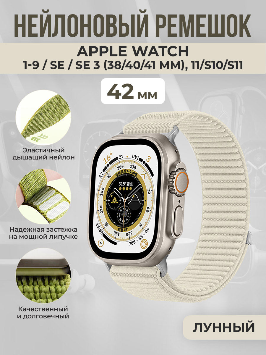 Нейлоновый ремешок для Apple Watch 1-9 / SE / SE 3 (38/40/41 мм), 11/S10/S11, 42 мм, лунный