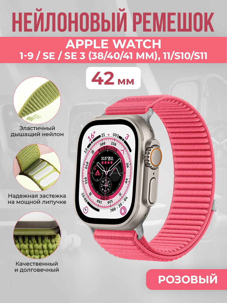 Нейлоновый ремешок для Apple Watch 1-9 / SE / SE 3 (38/40/41 мм), 11/S10/S11, 42 мм, розовый