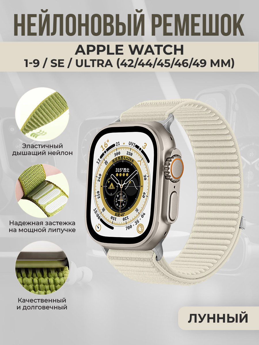 Нейлоновый ремешок для Apple Watch 1-9 / SE / ULTRA (42/44/45/46/49 мм), лунный