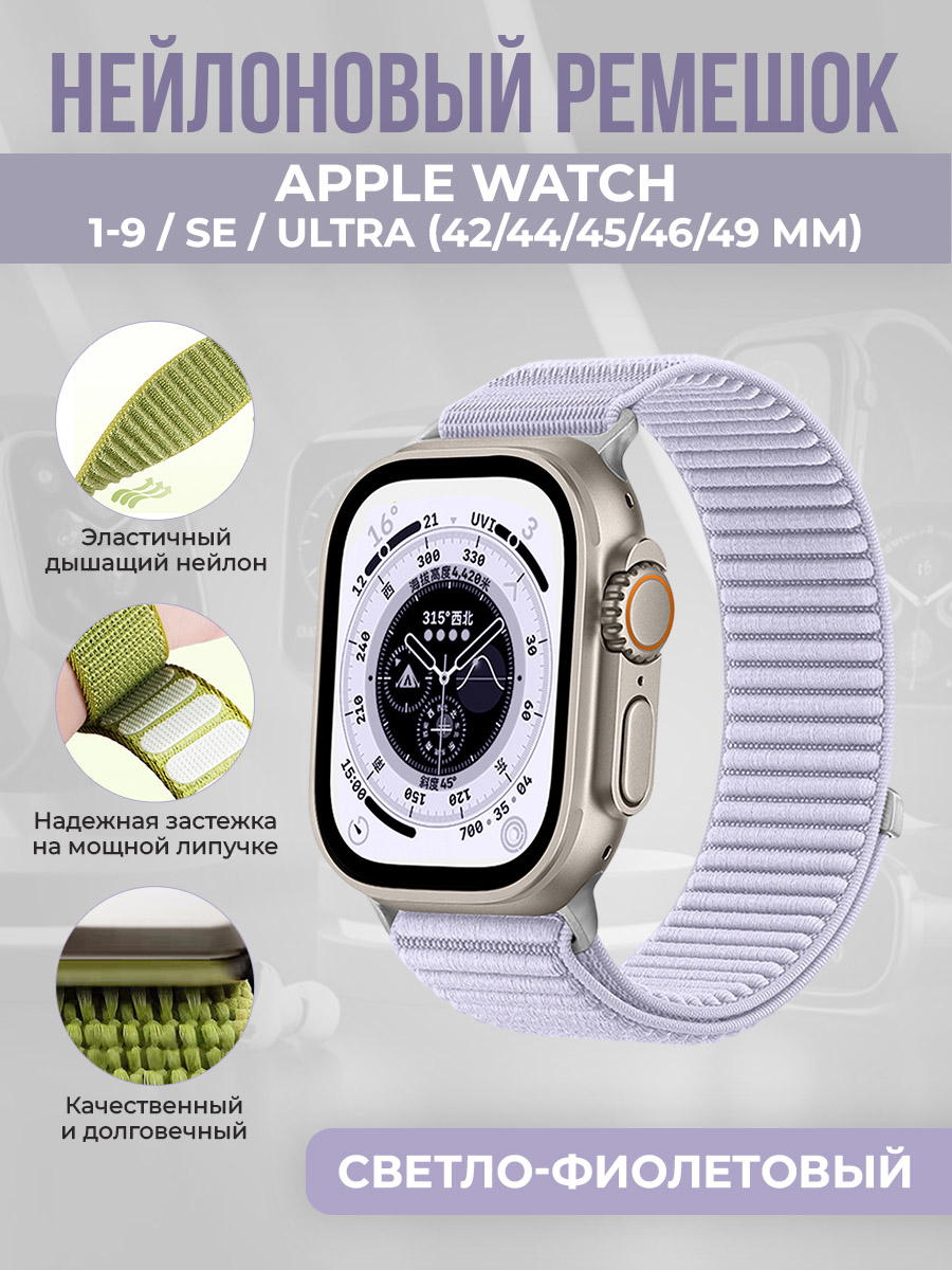 Нейлоновый ремешок для Apple Watch 1-9 / SE / ULTRA (42/44/45/46/49 мм), светло-фиолетовый