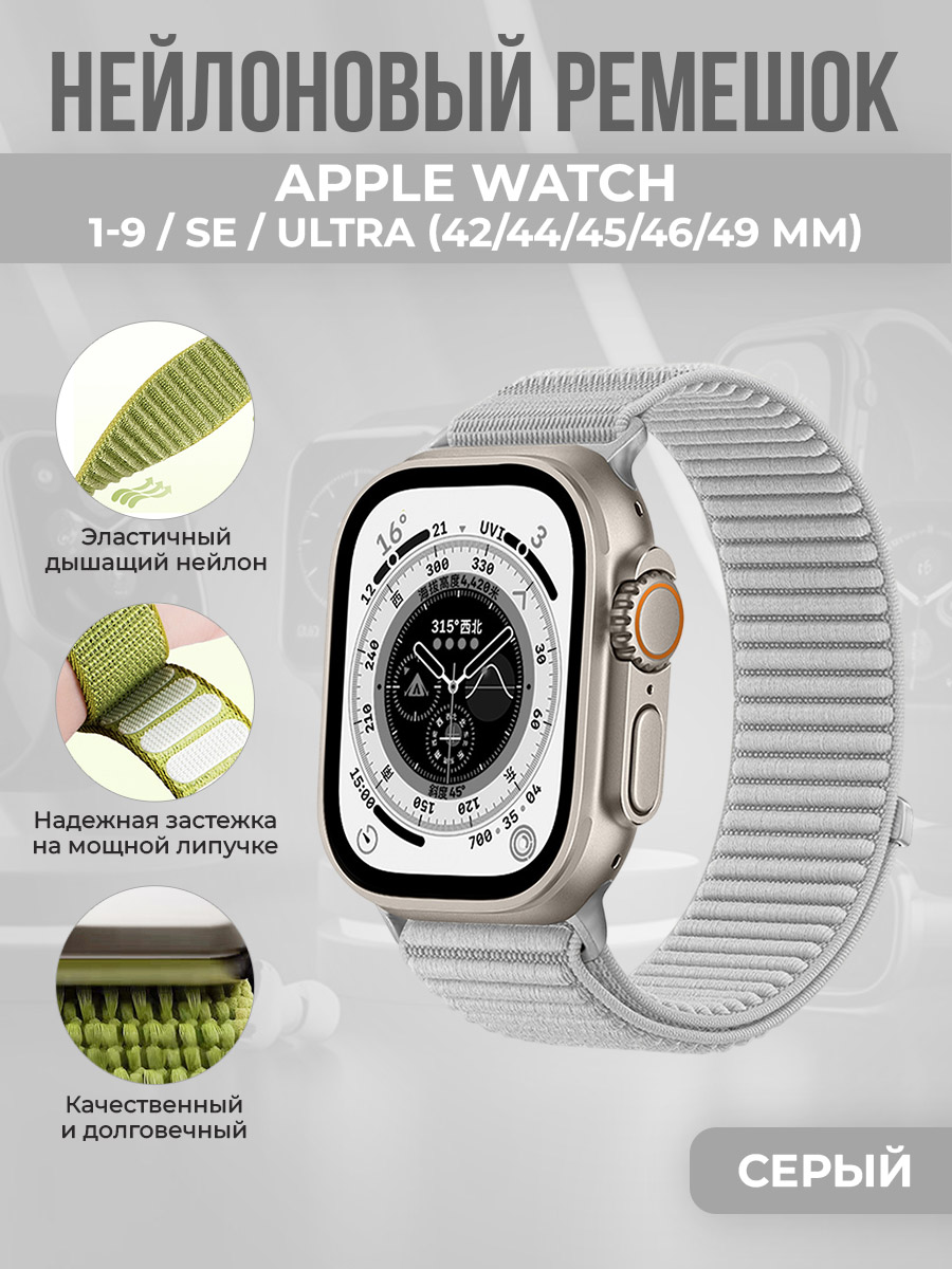 Нейлоновый ремешок для Apple Watch 1-9 / SE / ULTRA (42/44/45/46/49 мм), серый