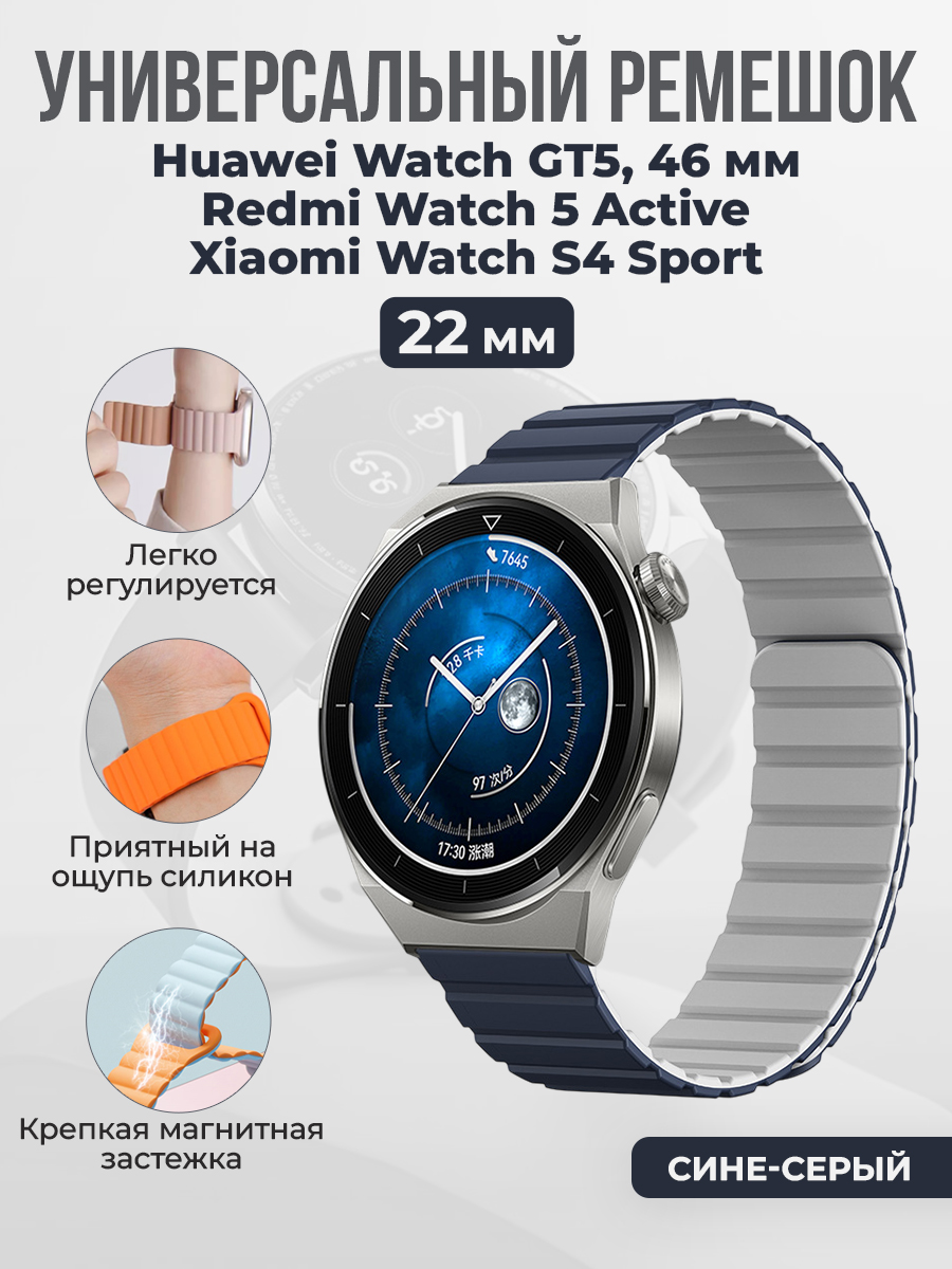 Универсальный ремешок для Huawei Watch GT5/Redmi Watch 5 Active/Xiaomi Watch S4 Sport, 22 мм, сине-серый