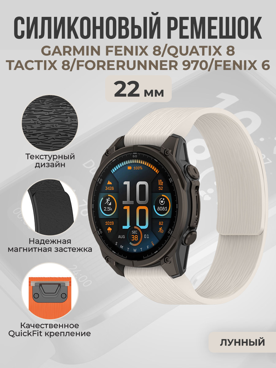 Силиконовый ремешок QuickFit для Garmin Fenix 8/Quatix 8/Tactix 8/Forerunner 970/Fenix 6, 22мм, лунный