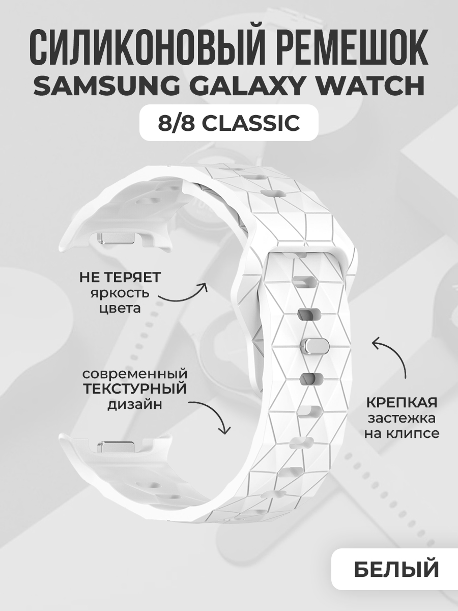 Силиконовый ремешок с рисунком для Samsung Galaxy Watch 8/8 Classic, белый