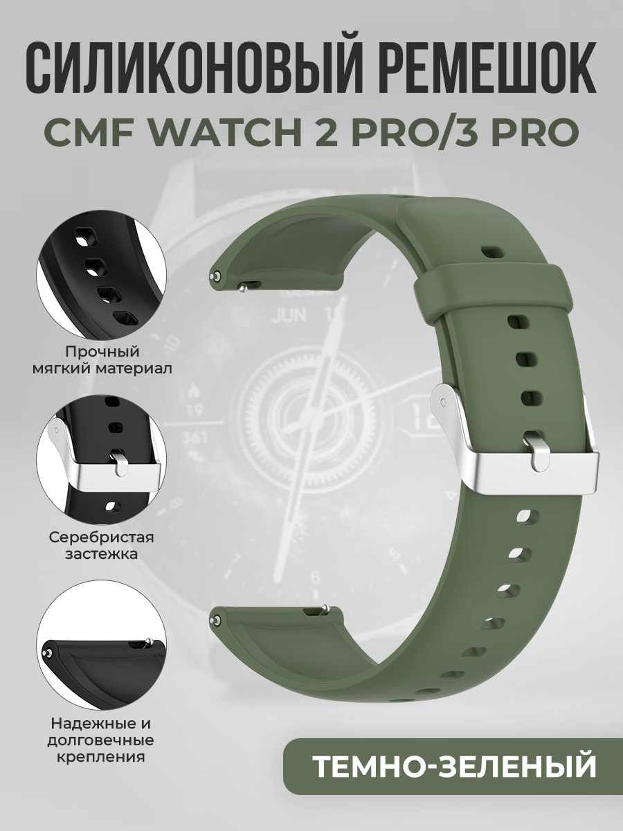 Универсальный силиконовый ремешок с серебристой застежкой для CMF Watch 2 Pro/3 Pro , темно-зеленый
