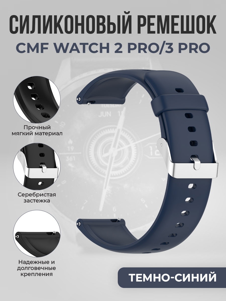 Универсальный силиконовый ремешок с серебристой застежкой для CMF Watch 2 Pro/3 Pro , темно-синий