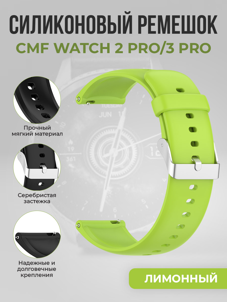 Универсальный силиконовый ремешок с серебристой застежкой для CMF Watch 2 Pro/3 Pro , лимонный