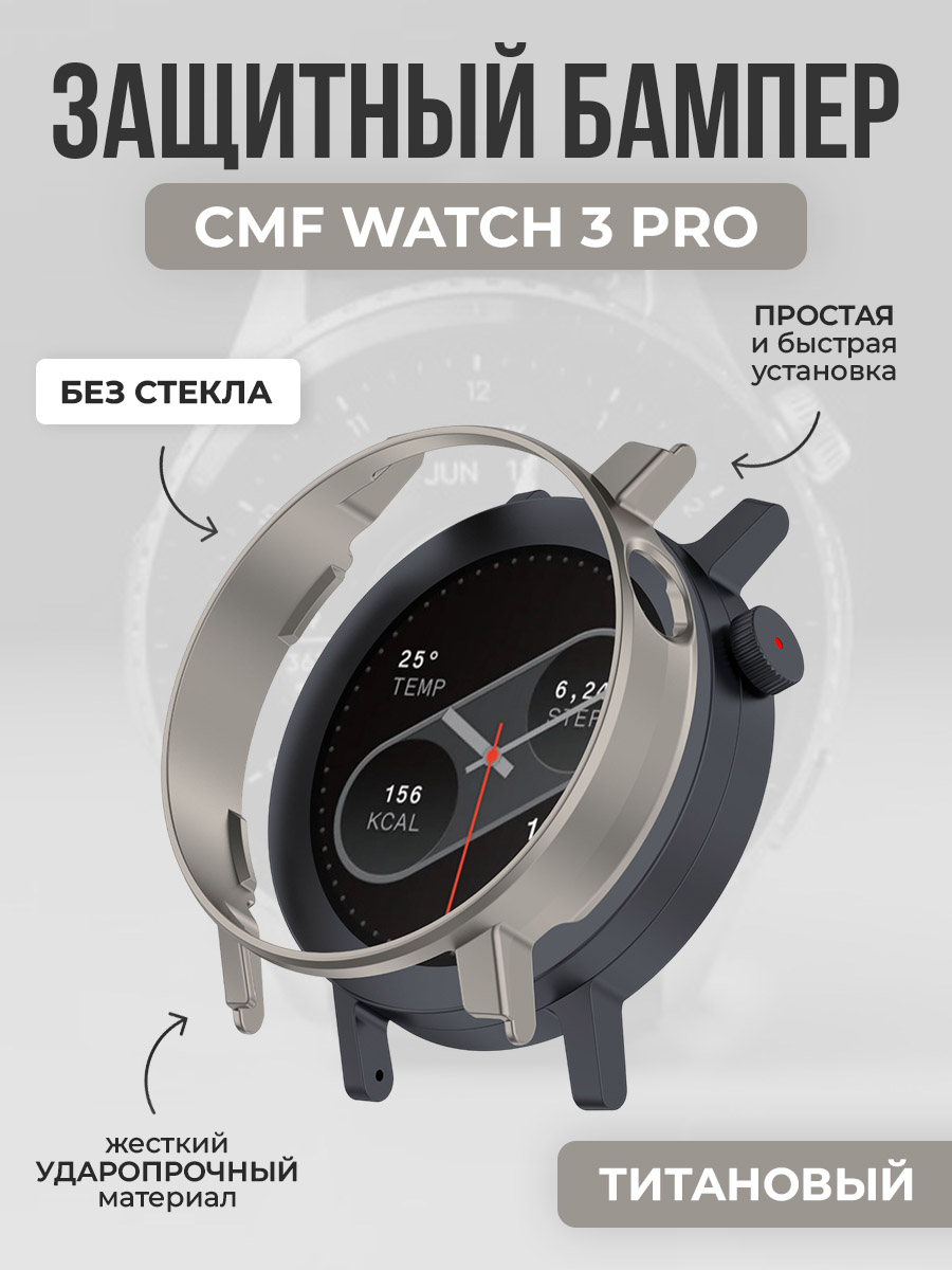 Жесткий защитный бампер для CMF Watch 3 Pro, титановый