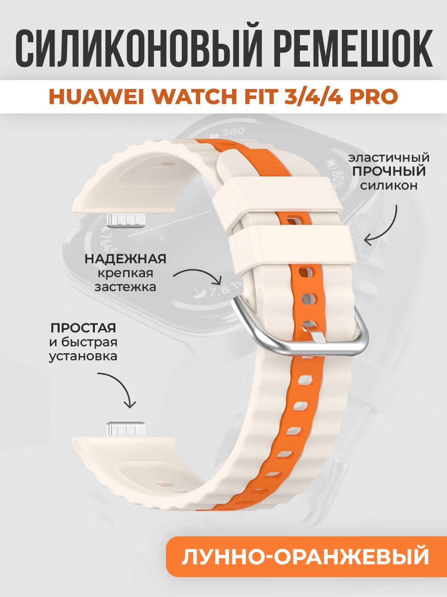 Силиконовый ремешок с вертикальными полосками для Huawei Watch Fit 3/4/4 Pro, лунно-оранжевый