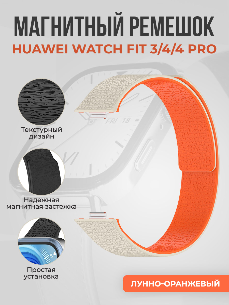 Мягкий магнитный силиконовый ремешок для Huawei Watch Fit 3/4/4 Pro, лунно-оранжевый