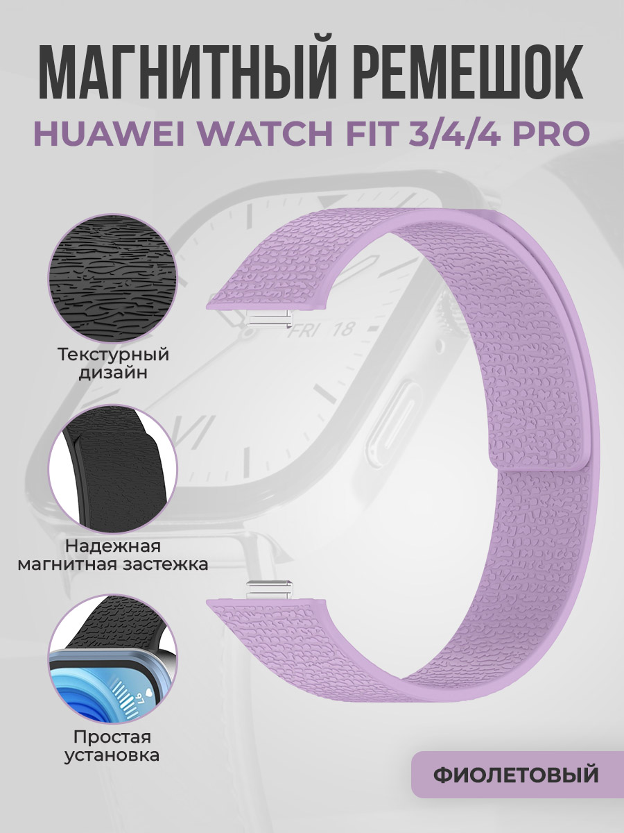 Мягкий магнитный силиконовый ремешок для Huawei Watch Fit 3/4/4 Pro, фиолетовый