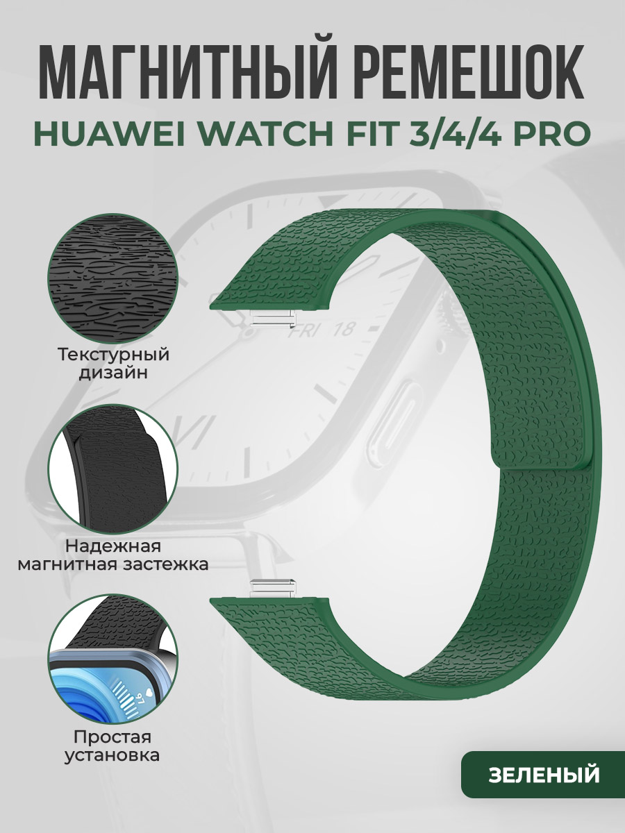 Мягкий магнитный силиконовый ремешок для Huawei Watch Fit 3/4/4 Pro, зеленый