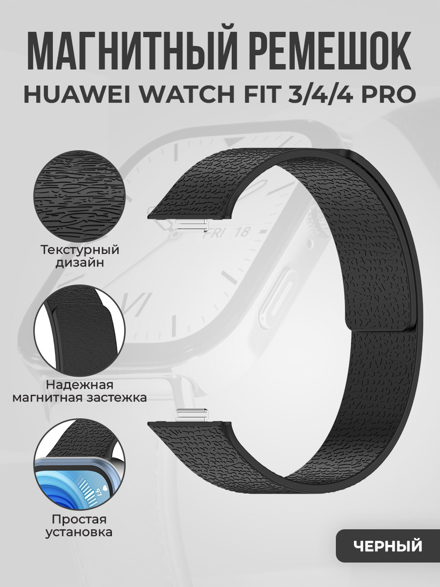 Мягкий магнитный силиконовый ремешок для Huawei Watch Fit 3/4/4 Pro, черный