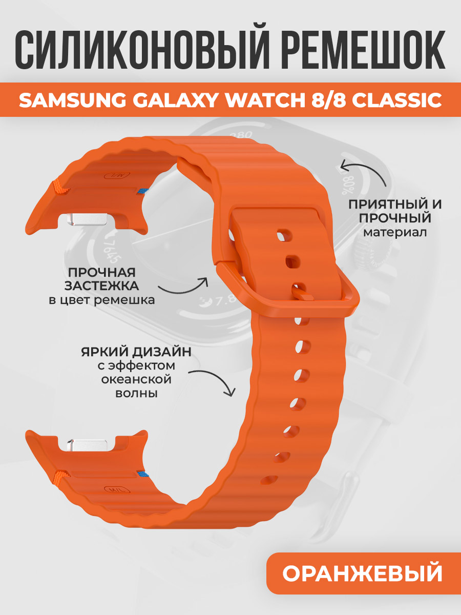 Силиконовый ремешок океанская волна для Samsung Galaxy Watch 8/8 Classic, оранжевый