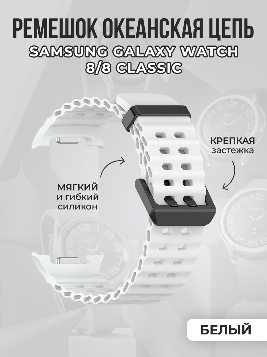 Дышащий силиконовый ремешок океанская цепь для Samsung Galaxy Watch 8/8 Classic, белый